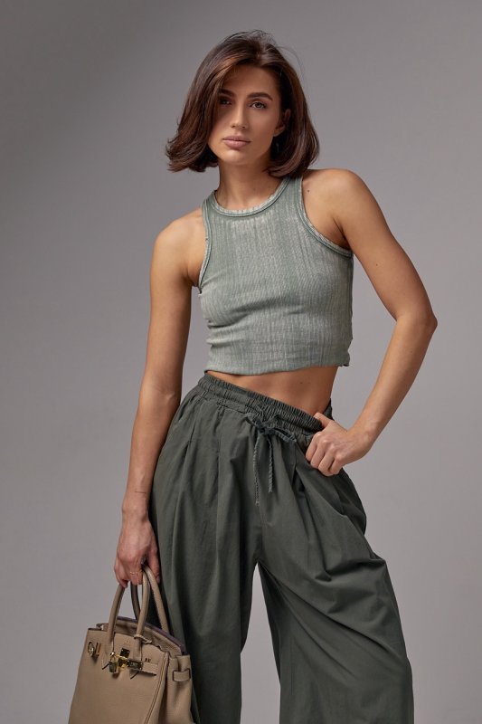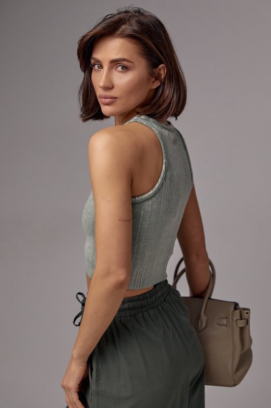 Женский топ-майка с эластичного трикотажа - 060149 зеленый